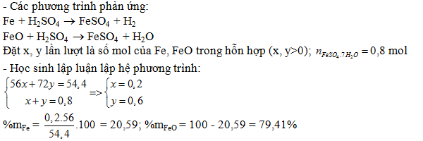 1. Hòa tan 54,4 gam hỗn hợp X gồm Fe và FeO vào dung dịch H2SO4 loãng, sau đó làm bay hơi dung dịch người ta thu được 222,4 gam chất rắn FeSO4.7H2O.