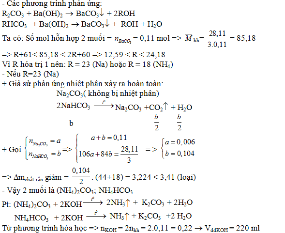 2. Hỗn hợp X có khối lượng 28,11 gam gồm hai muối vô cơ R2CO3 và RHCO3. Chia X thành 3 phần bằng nhau:
