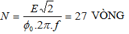 Phần cảm của một máy phát điện xoay chiều gồm 2 cặp cực. Vận tốc quay của rôto là 1500 vòng/phút. Phần ứng của máy gồm 4 cuộn dây giống nhau mắc nối tiếp. Biết rằng từ thông cực đại qua mỗi vòng dây là Ф0 = 5.10-3 Wb và suất điện động hiệu dụng mà máy tạo ra là 120V. Số vòng dây của mỗi cuộn dây là