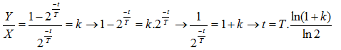 Ban đầu có một mẫu chất phóng xạ nguyên chất X với chu kì bán rã T. Cứ một hạt nhân X sau khi phóng xạ tạo thành một hạt nhân Y. Nếu hiện nay trong mẫu chất đó tỉ lệ số nguyên tử của chất Y và chất X là k thì tuổi của mẫu chất là: