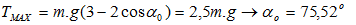 Dây treo con lắc đơn bị đứt khi lực căng của dây bằng 2,5 lần trọng lượng của vật. Biên độ góc của con lắc là: