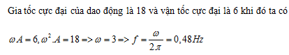 Một vật dao động điều hòa có vận tốc cực đại bằng 6 cm/s và gia tốc cực đại bằng 18