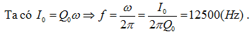 Một mạch dao động điện từ LC lí tưởng đang thực hiện dao động điện từ tự do. Điện tích cực đại trên một bản tụ là 4.10-6C, cường độ dòng điện cực đại trong mạch là 0,1πA. Tần số dao động điện từ tự do trong mạch bằng:
