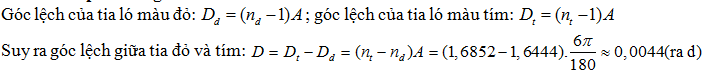 Một lăng kính có góc chiết quang A = 60, chiết suất của lăng kính đối với tia đỏ là nđ =