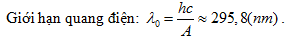 Công thoát êlectron của một kim loại là A = 4,2eV. Giới hạn quang điện của kim loại này