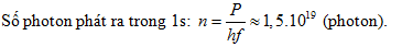 Một nguồn sáng chỉ phát ra ánh sáng đơn sắc có tần số 5.1014Hz. Công suất bức xạ điện từ của nguồn là 5 W. Số phôtôn mà nguồn phát ra trong một giây xấp xỉ bằng”