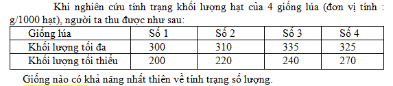 Giống số 1 có sự chênh lệch về khối lượng  lớn nhất