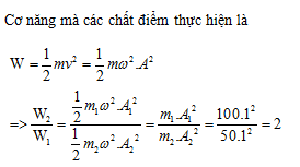 . Tỉ số cơ năng trong quá trình dao động điều hòa của chất điểm m2 so với chất điểm m1 bằng