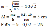 Một con lắc lò xo có độ cứng k = 100N/m, khối lượng vật nặng m = 500g dao động điều hòa theo