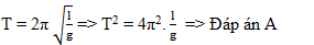 Một con lắc đơn có chiều dài dao động điều hòa với chu kì T. Gia tốc trọng trường g tại nơi con lắc này dao động là: