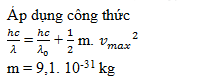 Chiếu một chùm ánh sáng đơn sắc có bước sóng 400nm vào catôt của một tế bào quang điện, được làm bằng Na. Giới hạn quang điện của Na là 0,50mm. Vận tốc ban đầu cực đại của electron quang điện là