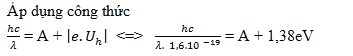 Chiếu vào catốt của một tế bào quang điện một chùm bức xạ đơn sắc có bước sóng 0,330mm. Để triệt tiêu dòng quang điện cần một hiệu điện thế hãm có giá trị tuyệt đối là 1,38V. Công thoát của kim loại dùng làm catôt là