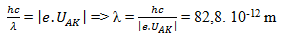 Hiệu điện thế giữa hai cực của một ống Rơnghen là 15kV. Giả sử electron bật ra từ catôt có vận tốc ban đầu bằng không thì bước sóng ngắn nhất của tia X mà ống có thể phát ra là