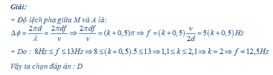 với k là số nguyên. Tính tần số ( biết f có giá trị trong khoảng từ 8Hz đến 13Hz ).