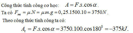 Một chiếc ô tô sau khi tắt máy còn đi được 100m. Biết ô tô nặng 1,5 tấn, hệ số cản bằng