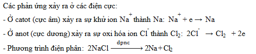 Khi điện phân NaCl nóng chảy (điện cực trơ), tại catot xảy ra ?