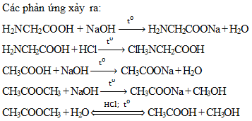 Cho từng chất : NH2-CH2-COOH; CH3COOH; CH3COOCH3 lần lượt tác dụng với dung dịch NaOH (đun nóng) và