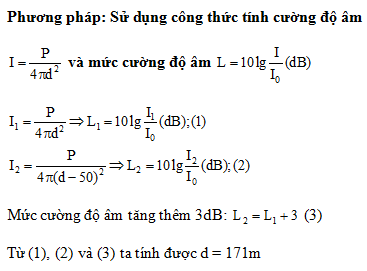Một người đứng trước cách nguồn âm S một đoạn d. Nguồn này phát sóng cầu. Khi người đó đi lại gần nguồn âm 50m thì thấy mức cường độ âm tăng thêm 3dB. Khoảng cách d là