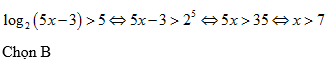 Giải bất phương trình log2 (5x – 3) > 5, ta có nghiệm là: