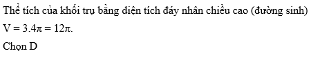 Một hình trụ có chiều cao bằng 3, chu vi đáy bằng 4π. Thể tích của khối trụ là: