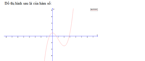 Từ đồ thị \( \Rightarrow \left( {0;1} \right)\) là điểm cực đại và \(\left( {2; - 3} \right)\) là cực tiểu chỉ có \(y = {x^3} - 3{x^2} + 1\)  thỏa mãn.
