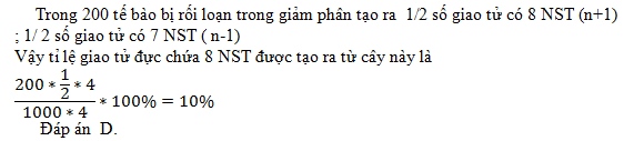 Một loài thực vật tự thụ phấn bắt buộc có bộ NST 2n=14, trong quá trình giảm phân ở một cây xét 1000 tế bào thấy có 200 tế bào đều có 1 cặp NST không phân li trong giảm phân I, giảm phân II bình thường. Tỉ lệ giao tử đực chứa 8 NST được tạo ra từ cây này là