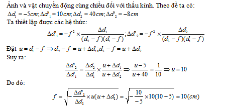 - Khi dời S gần thấu kính 5cm thì ảnh dời 10cm.