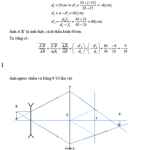 Xác định vị trí và độ phóng đại k của ảnh A’B’ trong trường hợp a = 34cm.