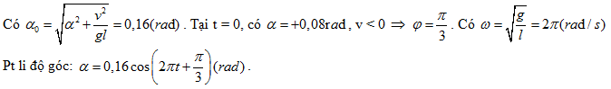 Con lắc đơn gồm quả cầu nhỏ treo vào sợi dây dài 25cm. Kéo vật để dây lệch góc 0,08rad rồi truyền cho vật vận tốc v=4
