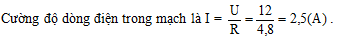 Một nguồn điện có điện trở trong 0,1 (Ω) được mắc với điện trở 4,8 (Ω) thành mạch kín. Khi đó hiệu điện thế giữa hai cực của nguồn điện là 12 (V). Cường độ dòng điện trong mạch là