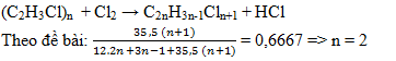 Thực hiện phản ứng chuyển hóa PVC thành tơ clorin bằng cách cho Cl2 tác dụng với PVC. Trong tơ clorin, clo chiếm 66,77% về khối lượng. Số mắt xích trung bình của PVC đã phản ứng với 1 phân tử clo là