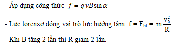 Một electron bay vào không gian có từ trường đều B với vận tốc ban đầu vuông góc cảm ứng từ. Quỹ đạo của electron trong từ trường là một đường tròn có bán kính R. Khi tăng độ lớn của cảm ứng từ lên gấp đôi thì: