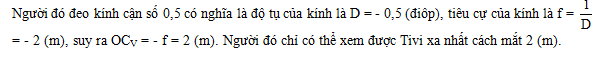 Một người cận thị phải đeo kính cận số 0,5. Nếu xem tivi mà không muốn đeo kính, người đó phải ngồi cách màn hình xa nhất là: