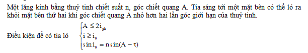 Một lăng kính bằng thuỷ tinh chiết suất n, góc chiết quang A. Tia sáng tới một mặt bên có thể ló ra khỏi mặt bên thứ hai khi