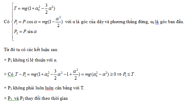 Khi khảo sát dao động của con lắc đơn với biên độ góc nhỏ, ta phân tích trọng lực thành hai thành phần: P1 theo phương của dây và P2 vuông góc với dây thì: