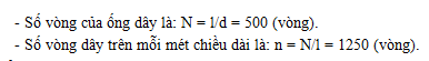 Một sợi dây đồng có đường kính 0,8 (mm), lớp sơn cách điện bên ngoài rất mỏng. Dùng sợi dây này để quấn một ống dây có dài l = 40 (cm). Số vòng dây trên mỗi mét chiều dài của ống dây là: