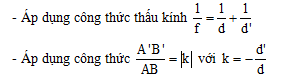 Đặt vật AB = 2 (cm) trước thấu kính phân kỳ có tiêu cự f = - 12 (cm), cách thấu kính một khoảng d = 12 (cm) thì ta thu được