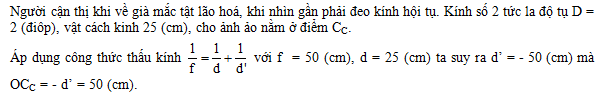Một người cận thị về già, khi đọc sách cách mắt gần nhất 25 (cm) phải đeo kính số 2.