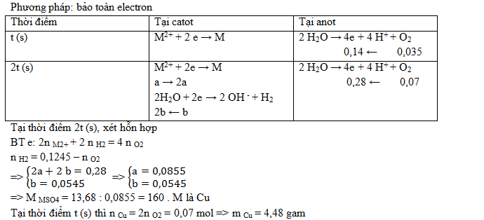 Hòa tan 13,68 gam muối MSO4 vào nước được dung dịch X. Điện phân X (với điện cực trơ, cường