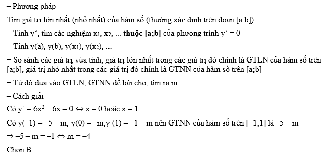 Cho hàm số y = 2x3 – 3x2 – m. Trên [–1;1] hàm số có giá trị nhỏ nhất là -1. Tính