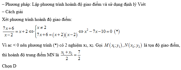 và đường thẳng y = x + 2 . Khi đó hoành độ trung điểm I của đoạn MN là ?