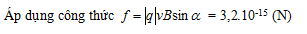 Một hạt prôtôn chuyển động với vận tốc 2.106 (m/s) vào vùng không gian có từ trường đều B = 0,02 (T) theo hướng hợp với vectơ cảm ứng từ một góc 300. Biết điện tích của hạt prôtôn là 1,6.10-19 (C). Lực Lorenxơ tác dụng lên hạt có độ lớn là.