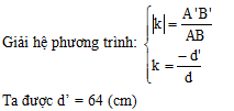 Vật AB = 2 (cm) nằm trước thấu kính hội tụ, cách thấu kính 16cm cho ảnh A’B’ cao 8cm. Khoảng