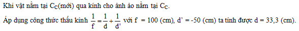 Một người viễn thị có điểm cực cận cách mắt 50 (cm). Khi đeo kính có độ tụ + 1 (đp), người này sẽ nhìn rõ được những vật gần nhất cách mắt