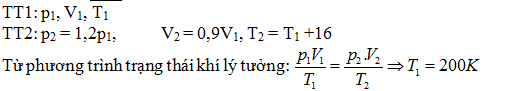 nếu thể tích của một lượng khí giảm đi 1/10, áp suất tăng 1/5 và nhiệt độ tăng thêm 160C so với ban đầu. Tính nhiệt độ ban dầu của khí.