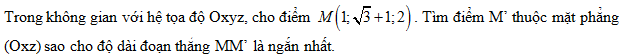 Để MM’ là ngắn nhất thì M’ là hình chiếu của M lên mp(Oxz).