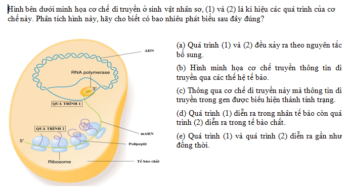 - Quá trình (1) là quá trình phiên mã, quá trình (2) là quá trình dịch mã.