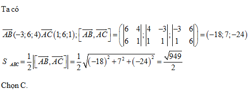 Trong không gian Oxyz cho A(3;-4;0) B(0;2;4) C(4;2;1). Tính diện tích tam giác ABC.