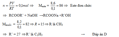Cho 8,6g este X bay hơi thu được 4,48 lít hơi X ở 2730C và 1 atm. Mặt khác cho 8,6g X tác dụng vừa