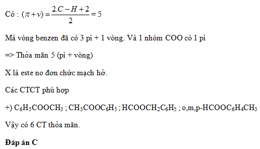 Este X chứa vòng benzen có công thức phân tử là C8H8O2. Số đồng phân của X là